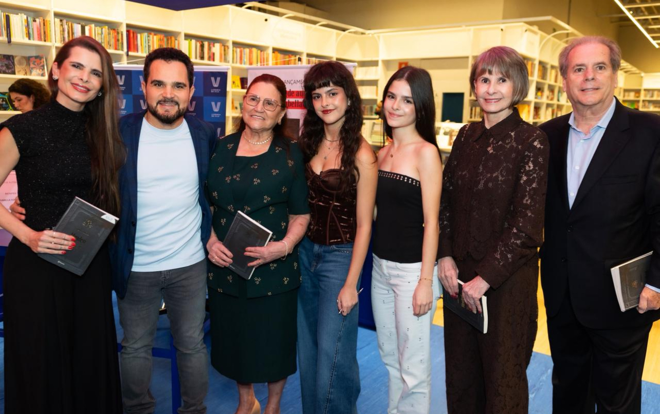 Entre estantes e leitores curiosos, Isabella recebeu o carinho dos pais, o cantor Luciano Camargo e Flávia Fonseca, que acompanharam de perto cada momento da noite. Também marcaram presença sua irmã gêmea, Helena, os avós maternos, Tereza e Mário Fonseca, a avó paterna, Helena Camargo, a tia Marlene Camargo, formando uma plateia que misturava orgulho e emoção a cada autógrafo.